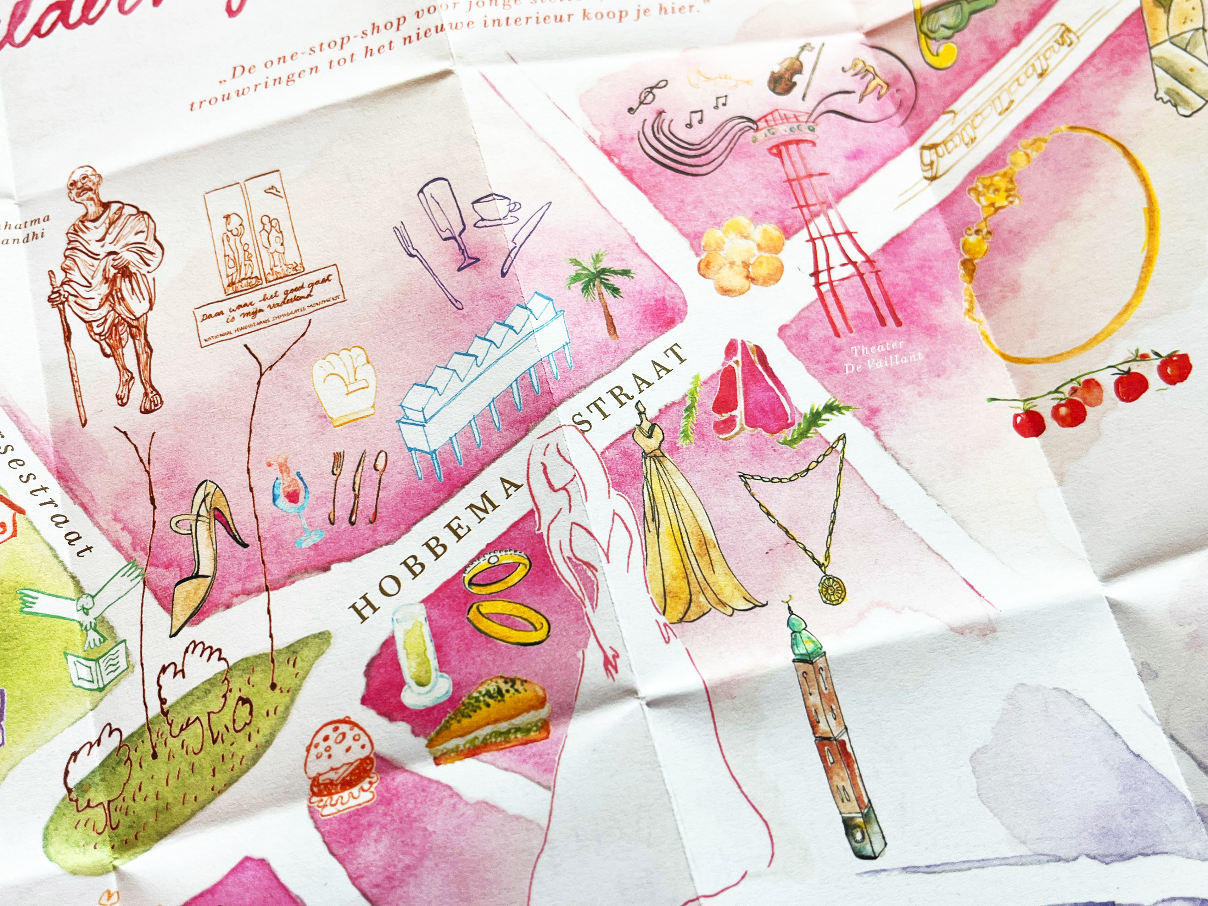 Geïllustreerde Plattegrond met gebiedslint – city marketing